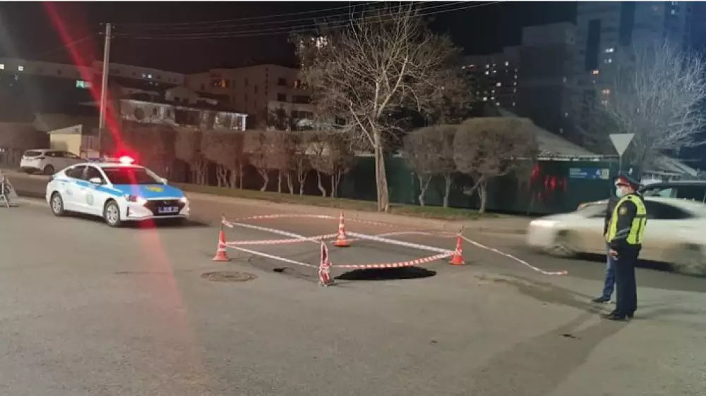Провал дорожного полотна произошел на пересечении улиц Шокана Уалиханова и Гумара Караша в Нур-Султане, передает Tengrinews.kz со ссылкой на пресс-службу столичного акимата.