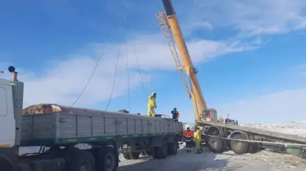 В Департаменте экологии по Карагандинской области сообщили, что 26 декабря около 06.00 часов в Шетском районе, на 912 километре автодороги Алматы - Екатеринбург, в двух километрах от села Кошкарбай перевернулась грузовая машина марки MAZ.