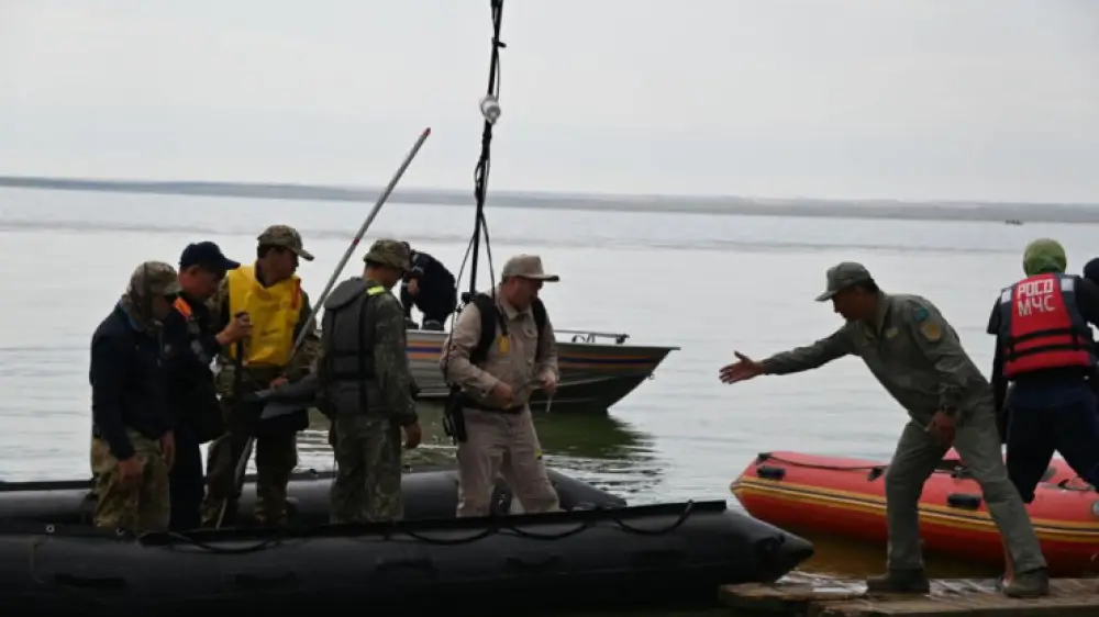 "Видимость составляет не более полуметра, местами - около метра. Местность камышовая. Это водохранилище построено в 60-е годы. Дно заилено на 4 метра. На данный момент проверяется озеро метр за метром. Работа проводится и днём, и ночью. Есть и угроза нашим сотрудникам и Минобороны - практически нет видимости, что находится под водой. Поэтому мы задействовали максимум сил и средств: сейчас работает морской металлоискатель, эхолоты", - рассказал Кеген Турсынбаев на брифинге в правительстве.