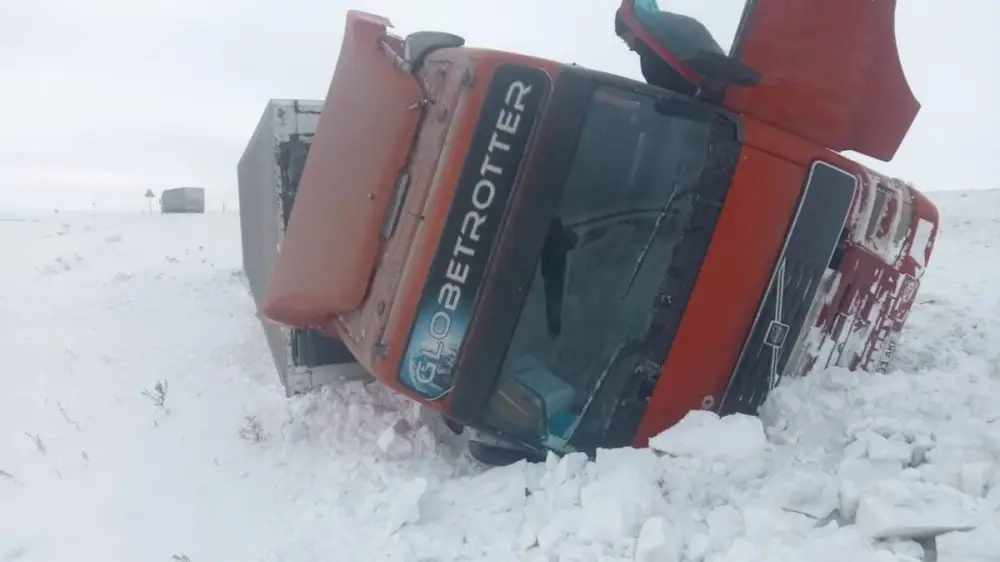 По информации полиции, 69-летний водитель из Кыргызстана не справился с управлением, в результате чего фура марки Volvo съехала в кювет и опрокинулась на бок. Водитель не пострадал.
