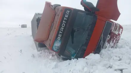 Фура с алкоголем опрокинулась на трассе в СКО Фото: polisia.kz