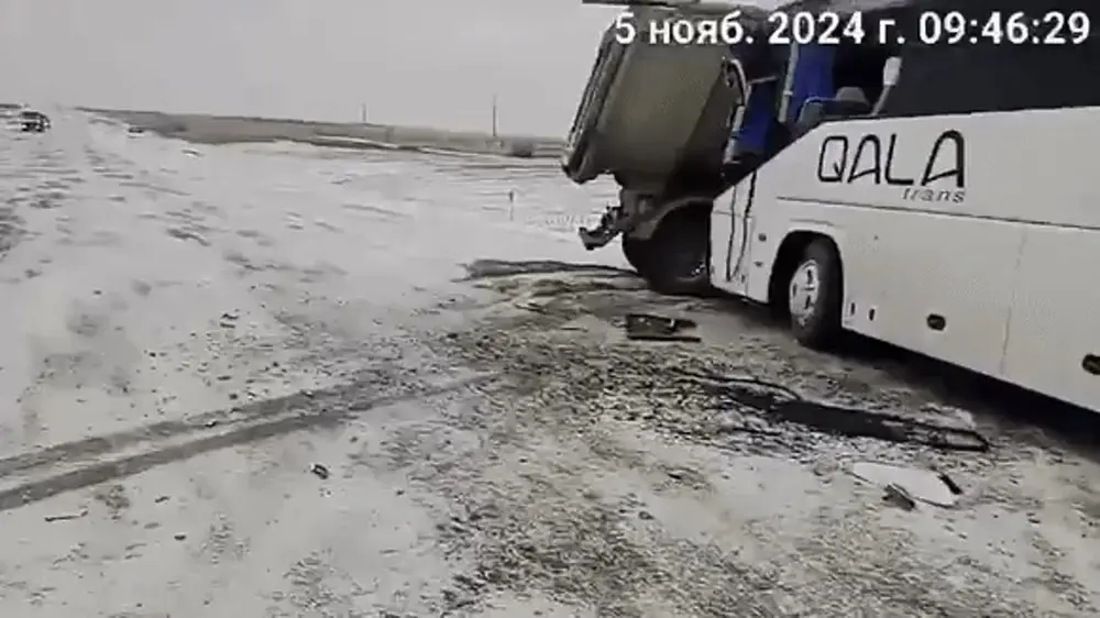 5 ноября в регионе резко ухудшилась погода. Трассы сковал гололед, с утра идет снег, местами метель. Из-за непогоды на тарссе Актобе - Астрахань произошло ДТП. Пассажирский автобус, следовавший в город Кандыагаш, влетел в грузовик.