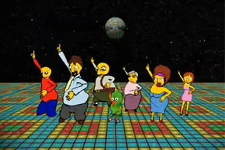Герои грузинского анимационного сериала также имеют желтый цвет кожи, как и персонажи американского аналога. Семья Самсонадзе, подобно Симпсонам, живет в вымышленном грузинском городе. Гела Самсонадзе - отец семейства, сильно смахивает на растяпу Гомера Симпсона. В новой версии он работает в банке, у него двое детей и попугай по имени Кок.