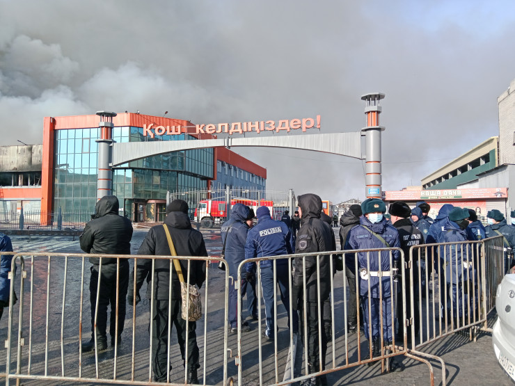 На подъездах к рынку "Акшын" все еще видно сильное задымление. По официальным данным, площадь возгорания превышает четыре тысячи квадратных метров. От огня пострадали два этажа здания. На первом этаже в центре зала располагались продуктовые ряды, склад, аптека, бутики, на втором этаже - отделы с одеждой, фуд-корт. Что именно пострадало сильнее всего и что уцелело, никто пока сказать не может. Предпринимателелй не пускают внутрь горевшего здания.