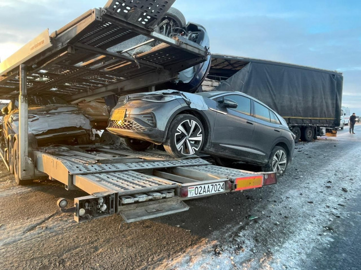 На трассе столкнулись автовоз марки Volvo и грузовая автомашина DAF. В результате ДТП на месте происшествия погиб водитель грузовой автомашины DAF, гражданин Таджикистана.