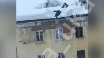 Житель ВКО упал с крыши многоэтажки при очистке снега и не пострадал Кадр видео.