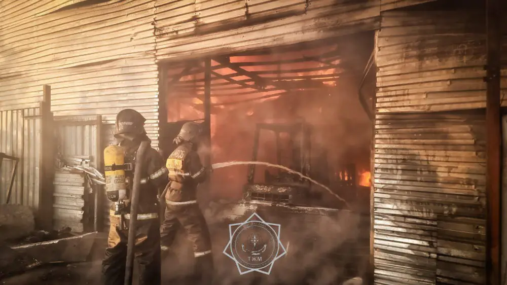 Как сообщили в пресс-службе МЧС, сигнал о пожаре поступил около 6 утра. Возгорание произошло в ангаре, расположенном в районе Сарыарка.
