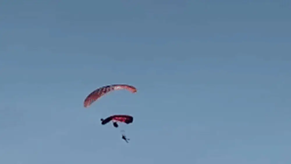 На опубликованных кадрах видно, как на большой высоте один человек врезается в другого после раскрытия парашюта на глазах у очевидцев. Затем они начинают стремительно падать, кружась при этом в воздухе.