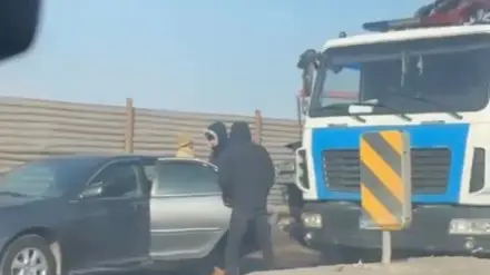 Видео аварии читатель Tengrinews.kz прислал на редакционный WhatsApp-номер. Читатель сообщил, что из-за аварии на мосту образовалась пробка.
