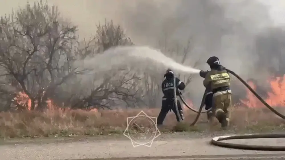 "В 13 часов 28 минут на территории поселка Лесное загорелся камыш, были задействованы для тушения 47 человек личного состава и несколько единиц техники. Сами видите, что погода еще усугубляет ситуацию. Ветер сильный, из-за чего огонь стремительно распространился на другие участки", - сообщил заместитель начальника департамента по ЧС Актюбинской области Айбат Жанабергенов.