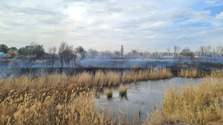 Как стало известно, загорелся камыш. Ситуацию усугубил ветер, огонь перекидывался с одного места на другое.