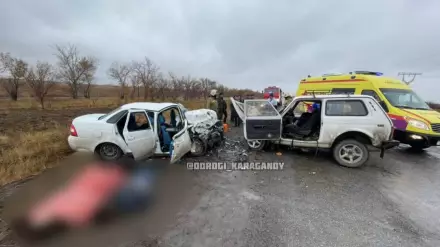 Лобовое столкновение двух машин привело к гибели трех человек в Карагандинской области, передает корреспондент Tengrinews.kz.