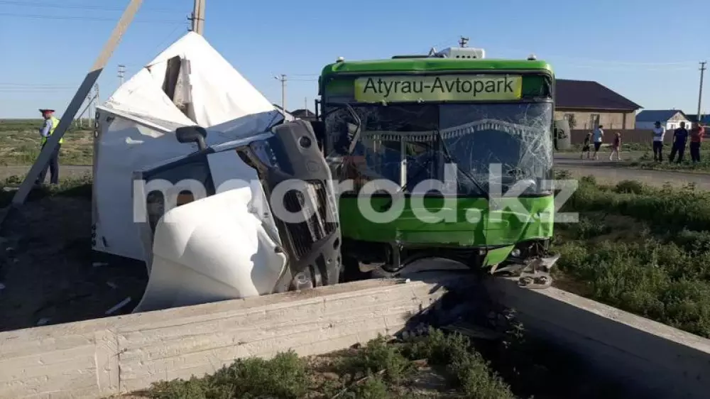 Авария произошла 29 мая около 19:00 на пересечении 18-й и 21-й улиц в поселке Таскала-3. По информации пресс-службы ДП Атырауской области, на перекрестке пассажирский автобус Daewoo не уступил дорогу двигавшейся справа "Газели" и врезался в нее.
