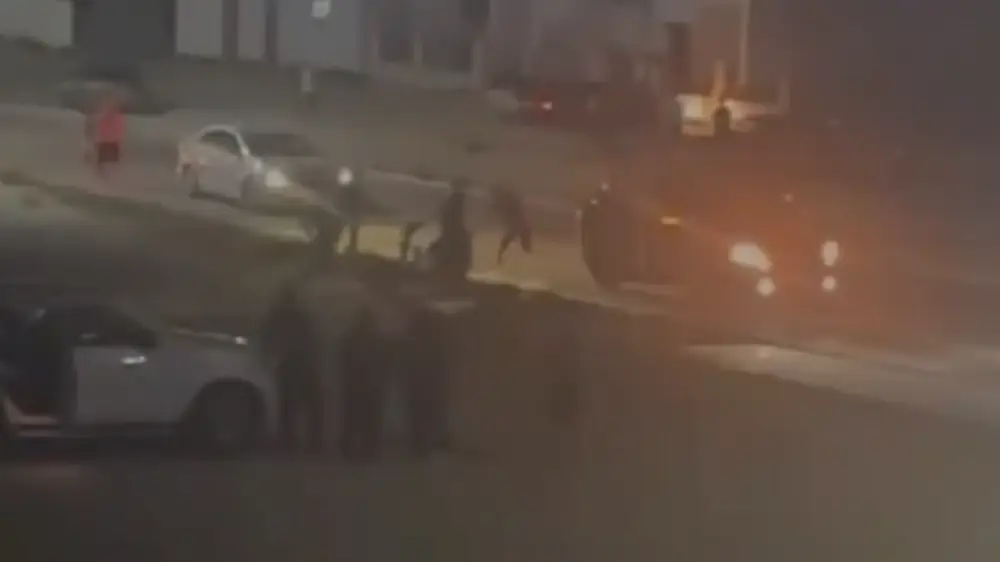 По словам очевидцев, 28 апреля примерно в 22:00 на дороге в селе Курык произошел конфликт между двумя водителями, переросший в драку. Видео с места происшествия опубликовали на странице 112 в Instagram.