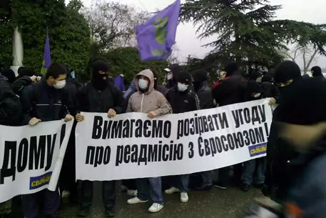 В центре Севастополя местные жители подрались с членами проукраинской националистической организации "Свобода", сообщает Ukranews. Администрация города выдала организации разрешение на проведение акции в поддержку своего кандидата в президенты Украины Олега Тягнибока. Однако представители коммунистов вместе с обычными жителями выстроились у памятника "Мужеству, стойкости и верности комсомольской", таким образом высказывая свое недовольство митингом. ОМОН и милиция разделили протестующих, после чего коммунисты забросали националистов яйцами. Под конвоем милиции представителей украинских националистов увезли в неизвестном направлении. Президентские выборы на Украине пройдут 17 января 2010 года. Фаворитами считаются действующий глава государства Виктор Ющенко, премьер-министр Юлия Тимошенко, а также глава Партии регионов Виктор Янукович. В своей предвыборной кампании Тягнибок пообещал севастопольцам сделать из города "свободный порт". Более того, он заявил, что подумает над тем, чтобы превратить Крым из автономного района в область. В рейтинге самых непопулярных кандидатов он сообщает набрал всего 3,4 процента голосов.