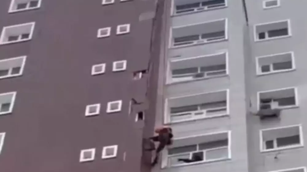 "Спасатели приняли решение спуститься с верхнего этажа комплекса через альпинистскую веревку и провели работу по демонтажу керамогранитов. Сотрудники ОСИ жилого комплекса поблагодарили за оказанную помощь", - говорится в сообщении.