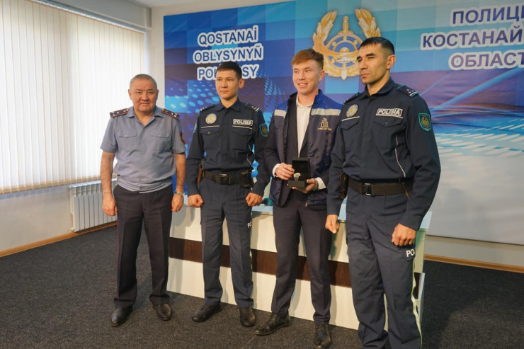 Полицейские наградили костанайца Бауржана Тажбаева за активную гражданскую позицию. Правоохранители вручили ему часы с логотипом МВД.