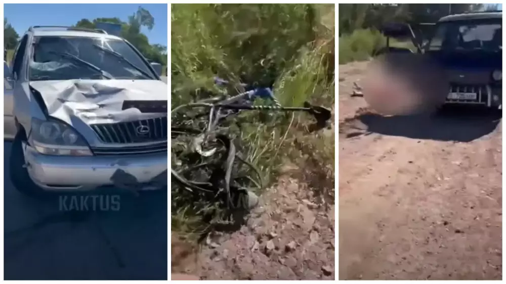 "Выехавшая на место происшествия следственно-оперативная группа установила, что 41-летний житель Бишкека У. А., двигаясь в автомашине Lexus-330 с востока на запад, на 97-м километре автодороги Балыкчы - Ананьево - Каракол совершил боковое столкновение с автомашиной "Ниссан-Микра" под управлением 40-летнего жителя села Григорьевка П. И., а после сбил велосипедиста из Казахстана 58-летнего Джузгенбаева Мурата, ехавшего по обочине дороги. В результате ДТП гражданин Казахстана скончался на месте происшествия", - сообщили в полиции региона.