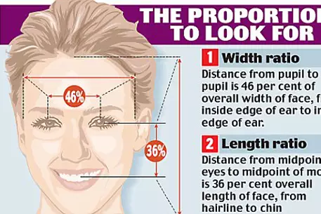 "Золотой стандарт" идеального лица должен состоять из пропорций "46/36". То есть расстояние между зрачками должно составлять 46 процентов от ширины лица, а расстояние от глаз до губ - 36 процентов от длины лица. По мнению ученых, под эти стандарты подходят лица таких знаменитостей, как Джессика Альба, Шанайя Твэйн и Элизабет Херли.