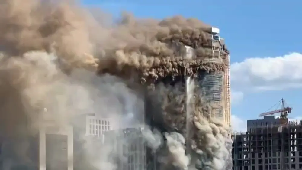 Читатели присылают на редакционный WhatsApp кадры, на которых видно высотное здание, окутанное клубами густого черного дыма.