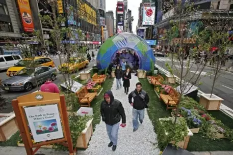 Две площади в центре Манхэттене Таймс-сквер и Херальд-сквер сделают пешеходными зонами, пишет газета The New York Times со ссылкой на заявление мэра Нью-Йорка Майкла Блумберга (Michael Bloomberg). По его словам, решение о введении постоянного запрета на въезд транспорта основывается на успешных результатах проведенного эксперимента - весной 2009 года уже закрывали часть примыкающих к Бродвею улиц. Тогда сильно снизилось количество автомобильных аварий. Кроме того, это решение поприветствовали пешеходы, туристы и уличные торговцы. Обе площади были названы в честь названий газет, офисы которых раньше находились на них. Таймс-сквер получила название от газеты The New York Times, а Херальд-сквер - в честь ее ныне несуществующего конкурента The New York Herald, которая закрылась в 1924 году. Таймс-сквер является одним из самых посещаемых туристических мест города. На площади и возле нее расположено множество театров, кинотеатров, ресторанов, магазинов и головных офисов крупных корпораций.