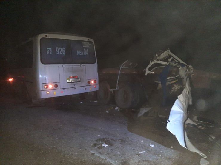 Авария произошла 17 декабря в 18.45 часов. "59-летний водитель автомашины марки ПАЗ (вахтовка, в салоне находились 12 человек), принадлежащей нефтяной компании, двигаясь со стороны поселка Жаркамыс в направлении Актобе, на 13-м километре автодороги областного значения Покровка - Жанажол, при возникновении препятствия и опасности для движения не принял меры к снижению скорости вплоть до полной остановки транспортного средства и допустил столкновение со стоящей на обочине автомашиной марки КамАЗ полуприцеп", - говорится в информации.