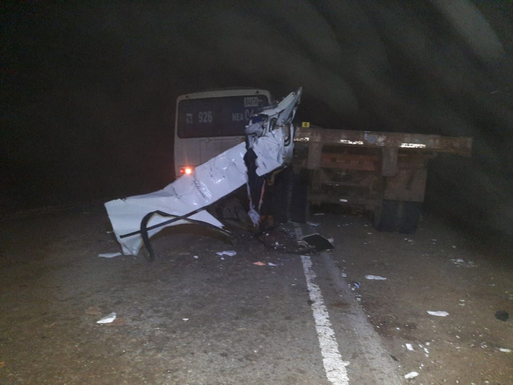 Вахтовый автобус, в котором находились 12 человек, столкнулся с КамАЗом на трассе в Актюбинской области, передает корреспондент Tengrinews.kz со ссылкой на пресс-службу ДП области.