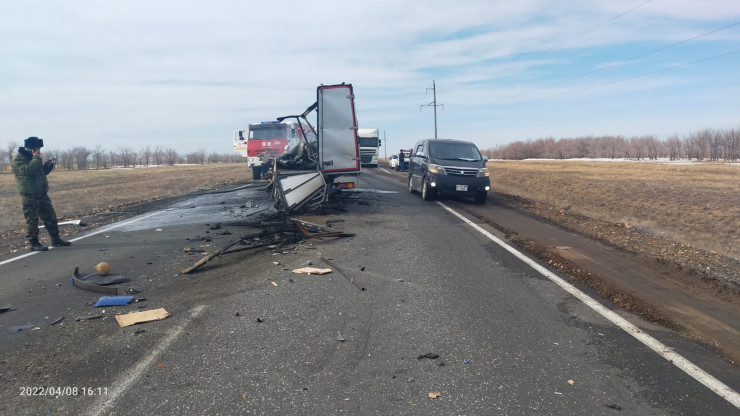 ДТП произошло 8 апреля на автодороге Самара - Шымкент вблизи поселка Киякты Айтекебийского района. По данным полиции, 38-летний водитель "Газели" выехал на полосу встречного движения, где врезался в грузовую автомашину DAF под управлением гражданина Республики Узбекистан.