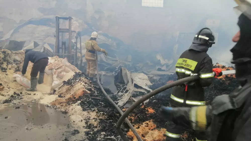 "На пост связи поступило сообщение о том, что горит здание рисоперерабатывающего завода ТОО "Жана жол", расположенного в ауле Дур Онгар Кармакшинского района Кызылординской области. Как установлено, горела деревянная конструкция кровли, площадь возгорания составила 234 квадратных метра (общая площадь предприятия 900 квадратных метров)", - сообщили в ДЧС региона.