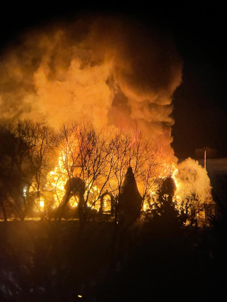 По информации ДЧС Алматы, пожар произошел по адресу: улица Таттимбета, дом 88 В. "Силы и средства ДЧС выехали по повышенному рангу. По прибытии открытым пламенем горели мансарда и кровля двухэтажного здания, создалась угроза перехода огня на расположенный рядом эркер.
