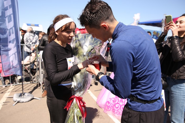 Организаторы утверждают, что на марафон большинство людей приходят не ради соревнований в забеге - "здесь проигравших нет", а ради атмосферы и чувства праздника. Так, жители Нур-Султана Арман Тлемисов и Рустем Адильбаев решили объединить две победы в своей жизни, и после финиша Арман (на 42,2 километра) и Рустем (на 21,1 километра) сделали предложение своим возлюбленным, кстати, тоже пробежавшим с ними в паре эти непростые дистанции.