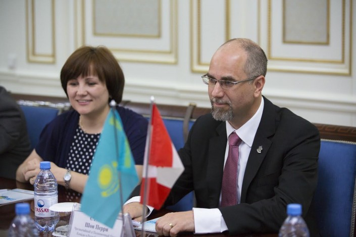 Сегодня аким ВКО Даниал Ахметов встретился с Чрезвычайным и Полномочным Послом Канады в РК Шоном Стайлом и легендарным хоккеистом, бывшим министром Социального развития Канады Кеннетом Драйденом.