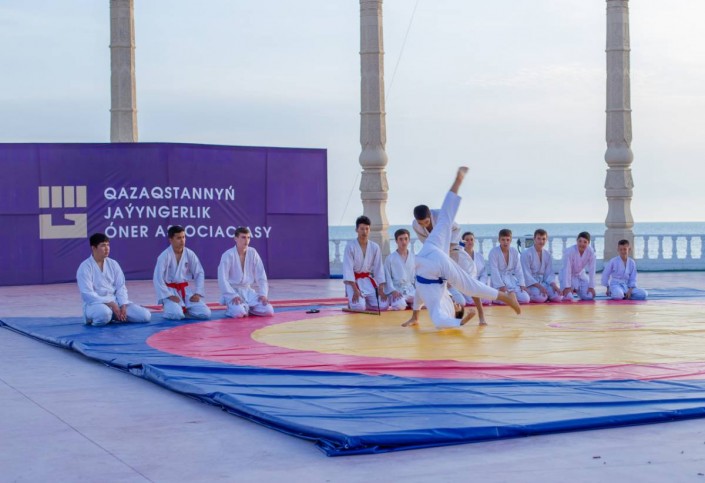 Представители 12 школ различных боевых видов спорта прошли маршем по набережной города, на которой и состоялись показательные выступления перед зрителями. Параллельно к празднику присоединились спортсмены и в Жанаозене, где после спортивных номеров состоялось общение юных воспитанников секций с мастерами.