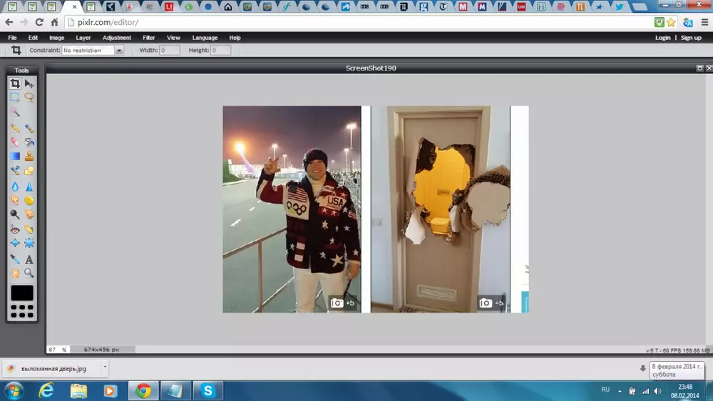 30-летний американец выложил фотографию сломанной двери на своей странице в "Твиттере" и прокомментировал: "После душа я попытался выйти, но дверь почему-то заклинило. Телефона при себе у меня не оказалось, поэтому пришлось применять свои бобслейные навыки".