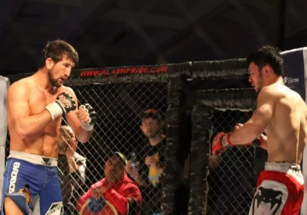 Боец Расул Мирзаев пожаловался на негостеприимство в Казахстане Расул Мирзаев (слева) в бою против казахстанца Ержана Естанова. © vk.com