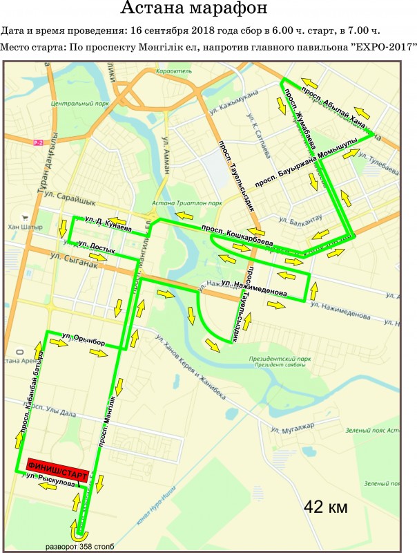 Место сбора участников - по улице Рыскулова, угол улицы Туркестан, стоянка Р4 (напротив EXPO-2017) в 06.00 утра.