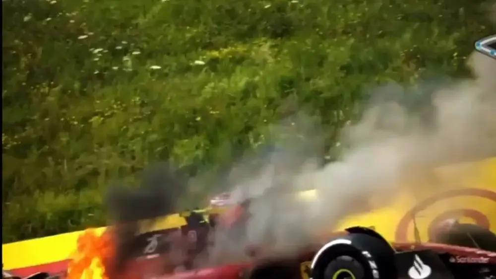 На 58-м круге гонки пилот Ferrari Сайнс шел третьим вслед за партнером по команде Шарлем Леклером и пилотом Red Bull Максом Ферстаппеном. Внезапно он сошел с гоночной трассы. Почти сразу после остановки двигатель болида начал гореть.