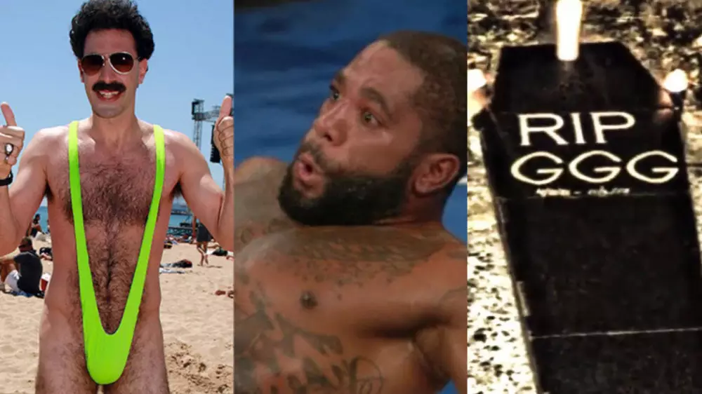 Ал кейін Головкинді "жерлеп", оның суреттерін Желіде таратқан. Онда табыт көрсетіліп, үстіне "R.I.P. GGG" деп жазылған.