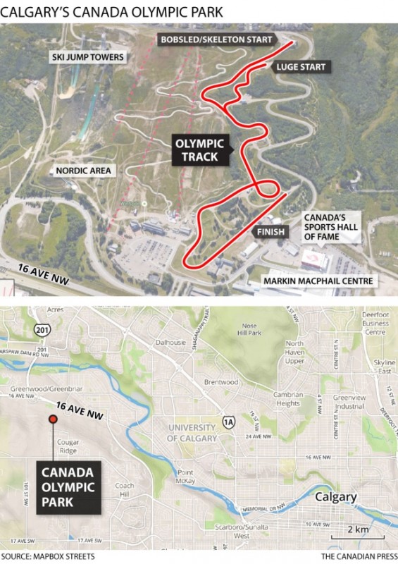 Подростки врезались на своих санях в разделительный отбойник на профессиональной бобслейной трассе. © Canadian Press