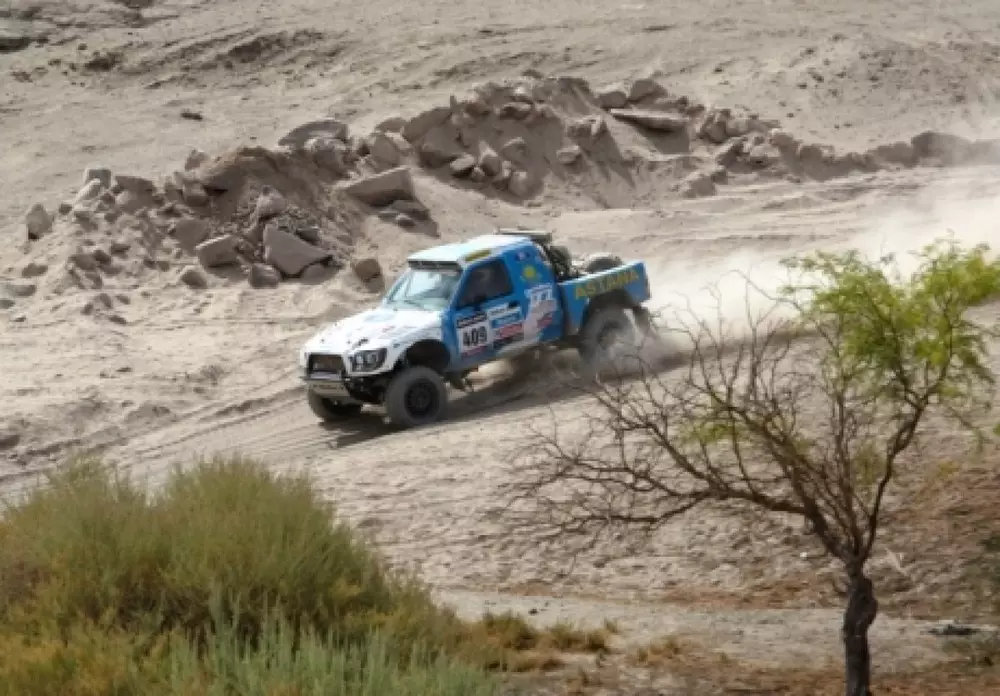 Гонщики казахстанской команды "Астана" Бауыржан Исабаев и Дмитрий Югай сохранили за собой 50-ю строчку в общем зачете внедорожников на ралли-марафоне "Дакар-2013", передает корреспондент Vesti.kz. В ходе восьмого этапа участники гонок проехали из города Каламы на юго-восток и после пересечения Анд финишировали в аргентинском городе Сальта. Всего же гонщикам пришлось проехать 754 километра, из которых 220 пришлись на спецучасток. Первым финишировал француз Стефан Петерансель. Он всего на полминуты опередил своего соотечественника Герлена Шишери. Третье время на этапе показал американец Робби Гордон. Казахстанские гонщики Исабаев - Югай и Айдын Рахимбаев - Габдулла Ашимов завершили восьмой этап на 49-м и 71-м местах. В общем зачете по прежнему лидирует Петерансель, который увеличил свое преимущество над катарским гонщиком Нассером Салех Аль-Аттия до трех минут. Третью строчку занимает южноафриканец Жиньель де Вильер. Представители "Астаны" Исабаев - Югай остались на 50-й строчке, а Рахимбаев и Ашимов занимают 69-е место в общем зачете внедорожников.