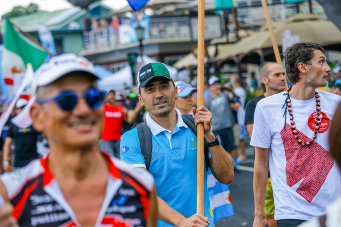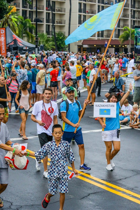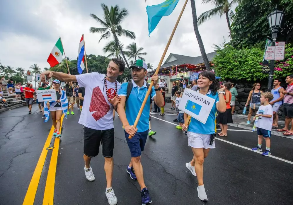 "Вчера прошел Парад наций, и впервые был поднят наш казахстанский флаг здесь на Коне, чемпионате мира IRONMAN! Тысячи спортсменов прошли по центральной улице мекки Ironman под приветствия ведущих, болельщиков и местных жителей. Нам определили место между Японией и Мексикой, правда, их было по 50-60 человек, а нас только трое. Но мы пронесли наш флаг с гордостью! И я счастлив, что мне выпала честь поднять наш флаг здесь, на другом конце Земли, на таком значимом мероприятии!" - написал в своем аккаунте в Facebook Айдын Рахимбаев.