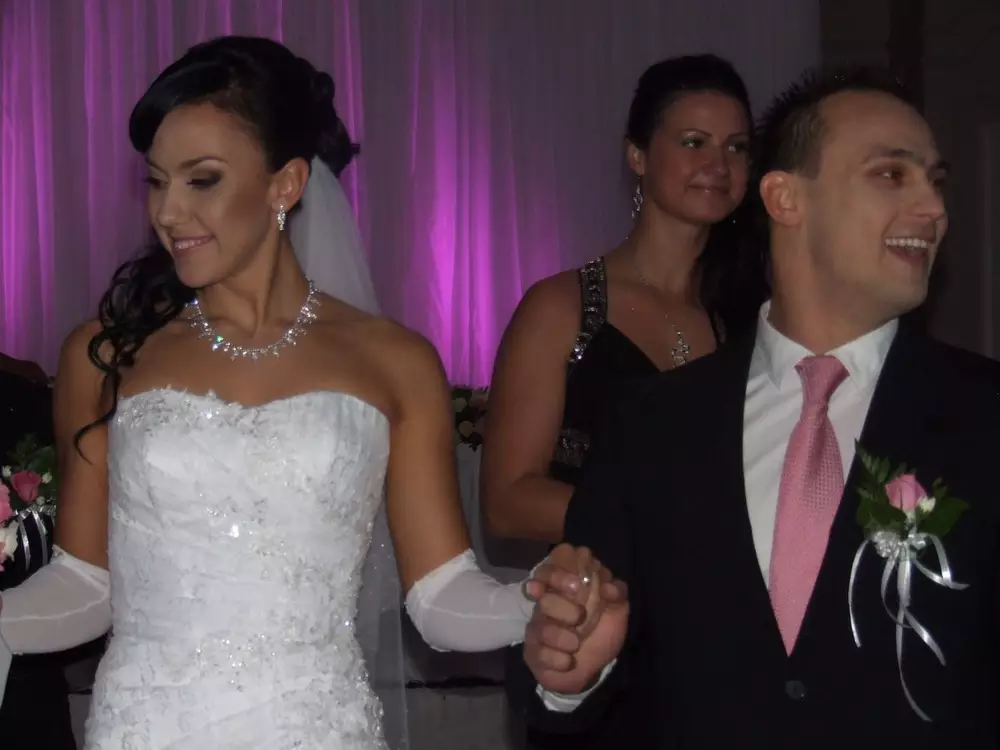 Счастливая пара поженилась в кругу близких, родных и друзей. Влюбленные расписались в книге регистрации браков и обменялись кольцами. Поздравить новую семью приехал и сам аким Алматы Ахметжан Есимов. Он зачитал поздравительную телеграмму от Президента Казахстана Нурсултана Назарбаева с теплыми словами в адрес молодоженов и передал подарки: жениху - часы, невесте - браслет.