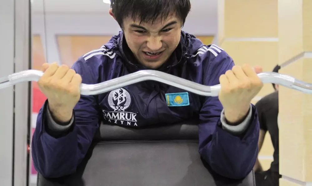Наша встреча с участниками Олимпиады в Лондоне началась в тренажерном зале. С раннего утра ребята приступают к усиленным тренировкам. Несмотря на плотный график, нам удалось пообщаться с молодыми и перспективными борцами - вольниками Даулетом Ниязбековым (борется в весе 55 килограммов) и Дауреном Жумагазиевым (60 килограммов). Они рассказали, как попали в спорт.