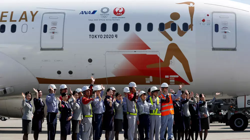 Пламя, зажженное Верховной жрицей, было передано президенту Олимпийского комитета Греции Спиросу Капралосу, который в свою очередь передал факел представителю Оргкомитета "Токио-2020" Наоко Имото.