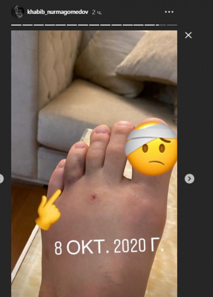 На фотографии, которую опубликовал Нургмагомедов, видны последствия травмы.