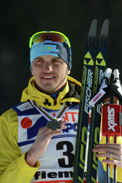 Алексей Полторанин на церемонии награждения на чемпионате мира по лыжным видам спорта в итальянском Валь-ди-Фьемме в 2013 году. © Илья Питалев/РИА Новости