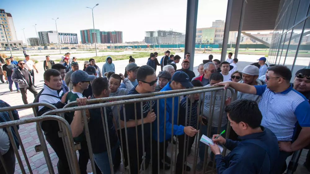 Жители Актау выстраиваются в очередь за билетами на футзал, передает Tengrinews.kz.