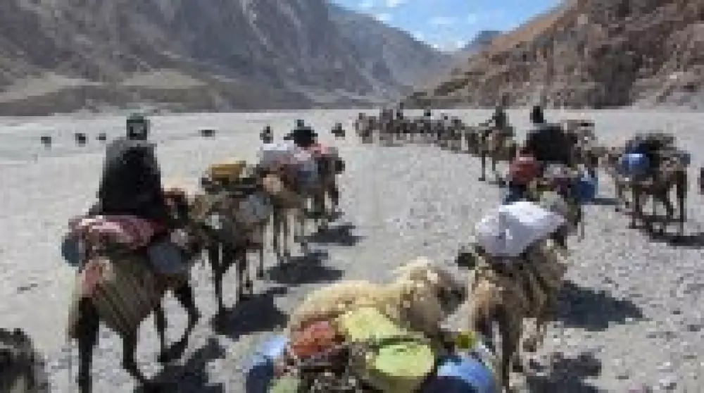 Международная экспедиция на К2, или Чогори, в Китае пересела с джипов на верблюдов и отправилась в четырехдневный путь до базового лагеря. Об этом в своем блоге сообщил участник восхождения - казахстанский альпинист Максут Жумаев.