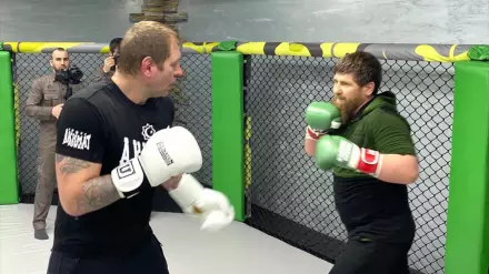 Российский тяжеловес выложил фото с главой Чечни из боксерского зала. На опубликованных снимках Кадыров и Емельяненко запечатлены в восьмиугольнике: оба в боевых стойках с надетыми на руки боксерскими перчатками.