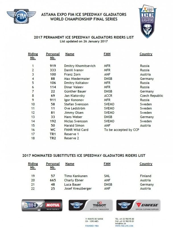 Всего в заявке соревнований 22 участника из России, Австрии, Германии, Швеции, Чехии, Финляндии. Ниже можно ознакомиться со списком всех гонщиков.
